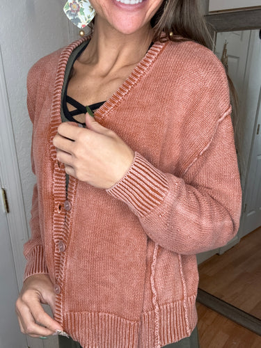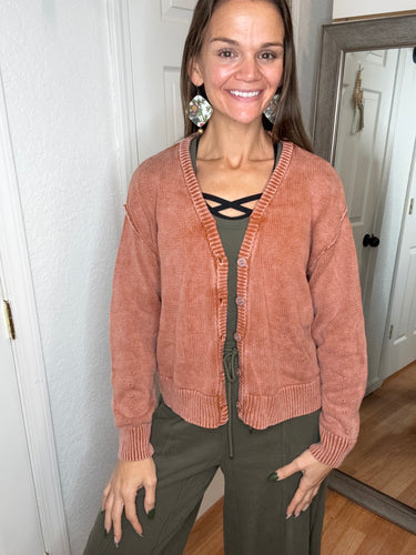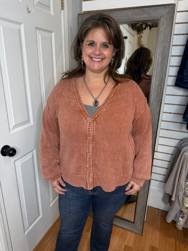 Stay cozy and stylish in the Olli Knit Cardigan in Rust. Featuring a button-down front and flattering V-neck, this cardigan combines comfort with easy layering. Its warm rust tone adds a touch of autumn charm to any outfit, perfect for everyday wear or cozy nights in. Designed to support your relaxed style, it’s a versatile addition to your wardrobe that you’ll reach for again and again.