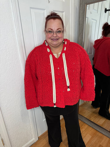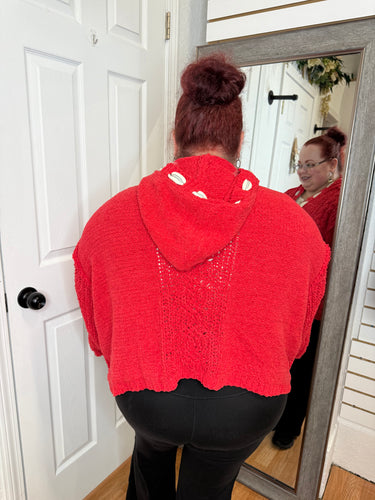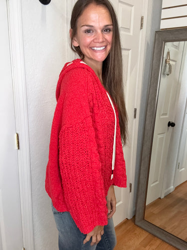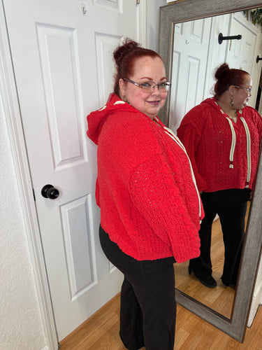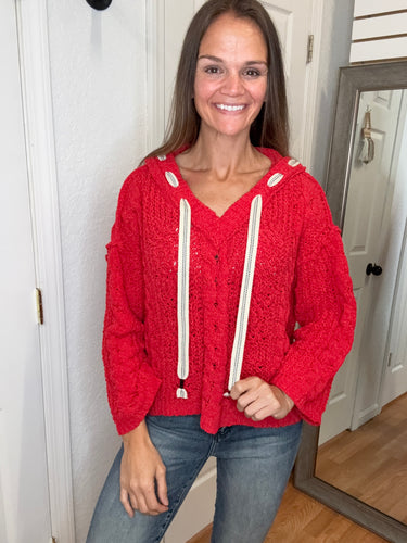 CRYSTAL CHENILLE HOODED SWEATER TOP RED- POL