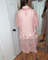 WILLOW LACE LONG SLEEVE COVER UP TOP PINK - POL