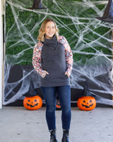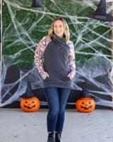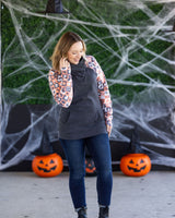 IN STOCK Zoey ZipCowl Sweatshirt -Trick-or-Treat Checkered and Charcoal