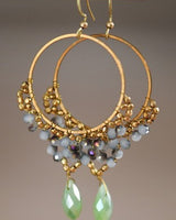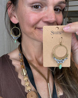 Bohemian Dangle Earrings | Green and Blue Earrings | Boho Bead Wrapped Earrings | Gold Plated Earrings