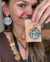 Description: Boho Painted Wood Drop Earrings. 1.8"x2.4"