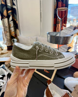VELOUR SAGE GREEN IN COLOR, WITH WHITE SOLES