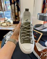 The AMAN SPARKLE LACE SNEAKER BY VERY G, is a glamorous and stylish addition to your footwear collection. Featuring A sage green velour, with glitter lace-up closure, these sneakers add a touch of sparkle to any outfit. Perfect for parties, events, or everyday wear, these sneakers are the perfect blend of fashion and comfort.