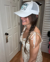 Description: C.C LAKE LIFE patch criss cross ponytail cap