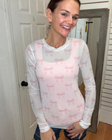 CHRISSA PINK BOW MESH TOP -BLAKELEY
