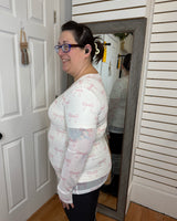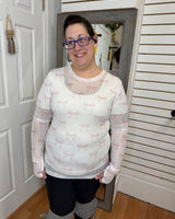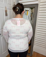 Our new Bow Mesh Tops are HERE!! Super cute for layering! Stretchy mesh print long-sleeve top features a totally sheer design. Perfect worn alone or paired under your favorite Lola cardigan, vest or sweater! Crew neck and thumbhole details sleeves.