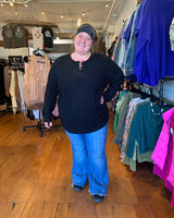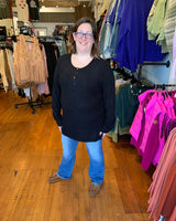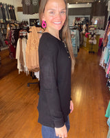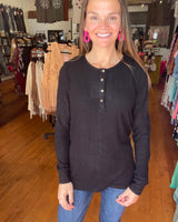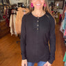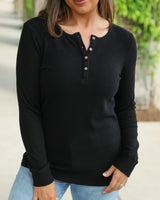 Brielle Henley Ribbed Long Sleeve - Black