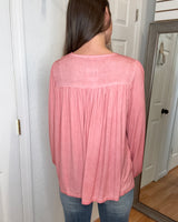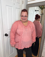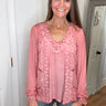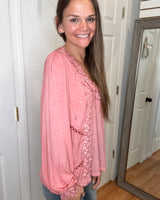 TILLIE LACE TRIMMED LONG SLEEVE TOP GUAVA - POL