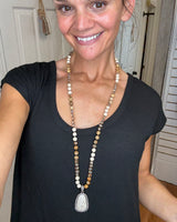 Beautiful, beaded strand necklace with crystal and stone beads.