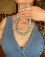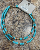 TEAL AND GOLD BEADED TWO LAYER NECKLACE