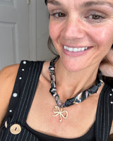 TIE BACK SCARF NECKLACE WITH RHINESTONE BOW PENDANT