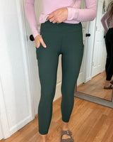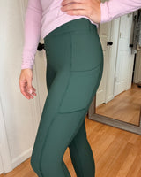 DAKOTA NYLON RIBBED LEGGINGS WITH POCKETS FOREST GREEN - RAE MODE