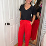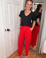 Expertly designed for both comfort and style, the FIRECRACKER STRAIGHT LEG PANTS feature an elastic waistband for easy wear and a flattering straight leg cut. Made with high-quality fabric, these red pants are the perfect addition to any wardrobe. Elevate your look with MITTOSHOP.