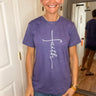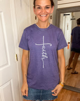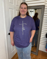 • Design: The tee showcases a vertical cross graphic with the word faith