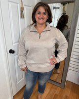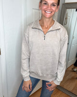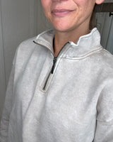BAILEY COLLARED HALF ZIP PULLOVER SWEATSHIRT ASH MOCHA - ZENANA