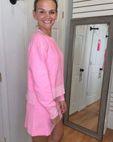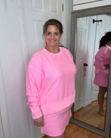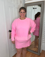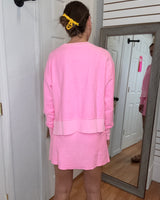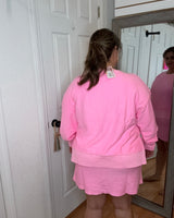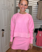 CASSIE CORDED CROPPED SIDE SLIT PULLOVER SWEATSHIRT - PINK - MOON RYDER