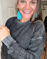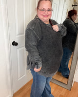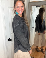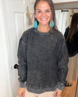 ELLIE ROUNDED BOTTOM CORDED SWEATSHIRT - BLACK- MOON RYDER