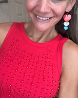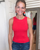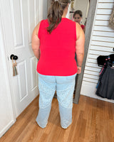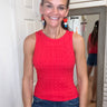 CLAUDIA RHINESTONE AND PEARL SLEEVELESS TANK TOP - RED - WHITE BIRCH