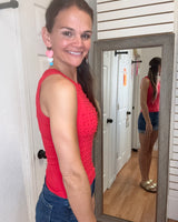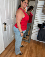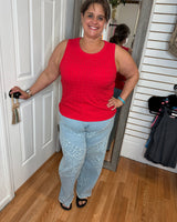 Introducing our Claudia Pearl and Rhinestone Tank in RED. This tank top features elegant pearls and dazzling rhinestones, adding a touch of sophistication to any outfit. Elevate your wardrobe with this must-have piece.