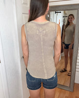ASHLYNN WASHED RIBBED TANK TOP ASH MOCHA - ZENANA
