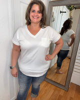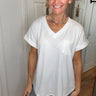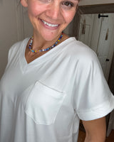 Experience everyday comfort in the Blayna Pocket Tee IVORY Mittoshop. Its soft fabric and classic V-neck design provide easy, breathable wear, while the handy pocket adds a touch of practicality. Perfect for layering or wearing on its own, this tee supports your busy lifestyle with simple style and reliable comfort.