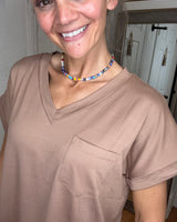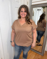 Experience everyday comfort in the Blayna Pocket Tee Mocha Mittoshop. Its soft fabric and classic V-neck design provide easy, breathable wear, while the handy pocket adds a touch of practicality. Perfect for layering or wearing on its own, this tee supports your busy lifestyle with simple style and reliable comfort.