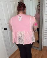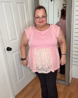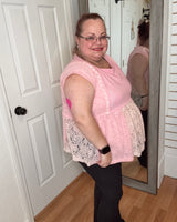 This pink short sleeve peplum top features delicate lace details that add a touch of elegance to your everyday look. Its flattering silhouette enhances your shape while providing comfortable wear throughout the day. Perfect for pairing with jeans or skirts, this top combines style and comfort effortlessly.