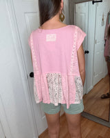 TIANA SHORT SLEEVE BABYDOLL TOP PINK - POL