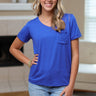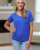 Sophie pocket tee! These are made with your favorite buttery soft fabric! A high stretch tee with the v neck, cuffed sleeves, and a straight pocket accent! Great to wear all year long and sure to be your next favorite grab and go top!