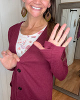 Introducing Cori, the shorter version of our popular Colbie cardigan! This soft cardigan has buttons, pockets and thumbholes! Cori is the perfect combination of style and functionality and will pair so nicely with your wear to work wardrobe or casual jeans and boots this fall!