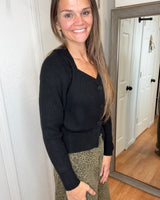 FAYE SWEETHEART BUTTON UP CARDIGAN BLACK - MIKAROSE