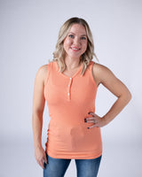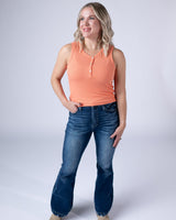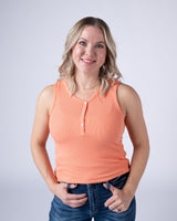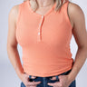 Slip into effortless style with the Addison Tank in Orange—a lightweight micro ribbed henley that's your new spring and summer essential. The delicate ribbed texture adds subtle dimension while keeping things breezy and breathable. Perfect for layering or wearing solo, this versatile piece transitions seamlessly from casual days to warm-weather adventures. Comfort meets chic in this wardrobe staple you'll reach for again and again.