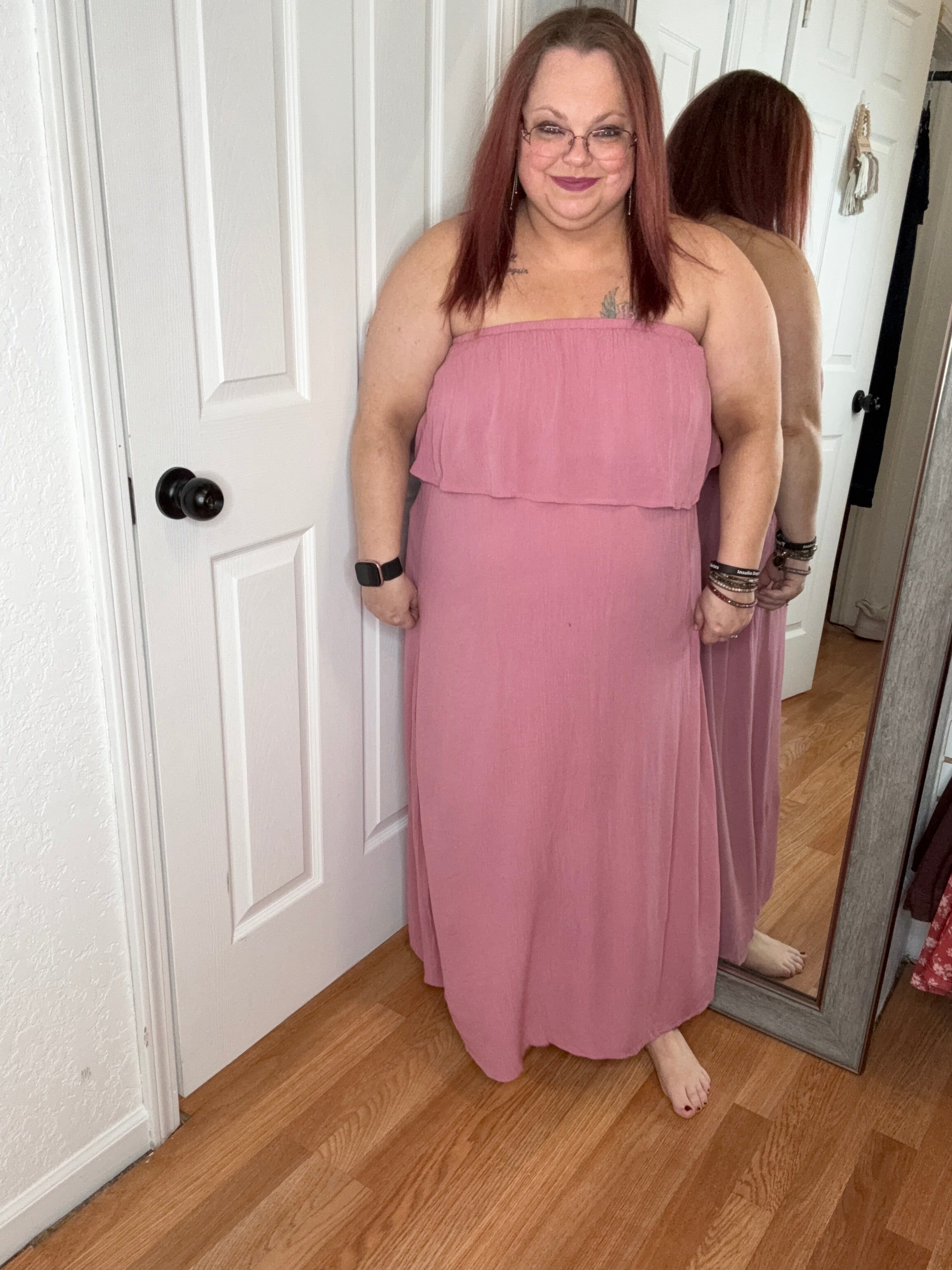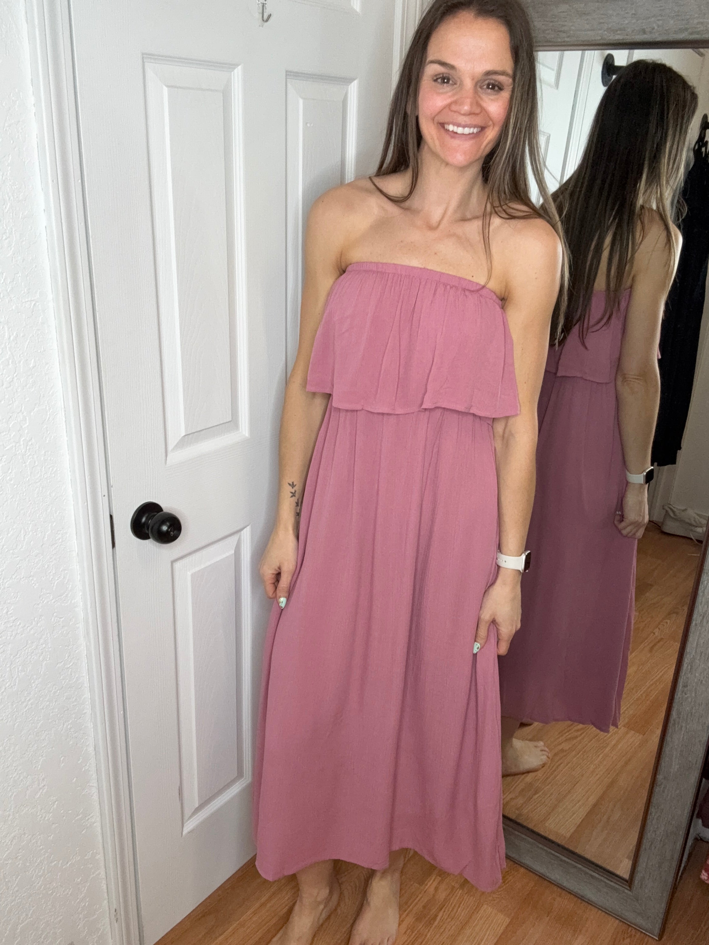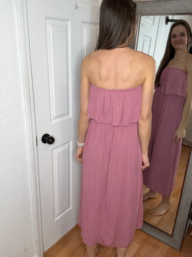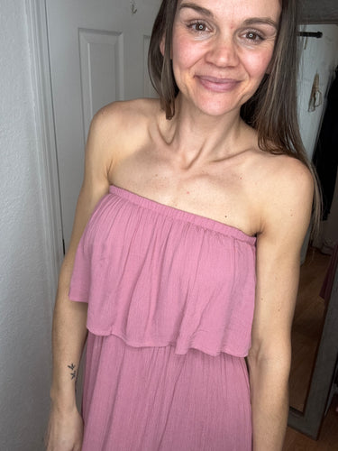 Elevate your evening look with the Alicia Strapless Maxi Dress in rose pink. This sophisticated Zenana piece features a crinkle rayon fabric that drapes beautifully, creating an effortlessly elegant silhouette. The lined interior ensures comfort and confidence, while the strapless design offers versatility for any occasion. Perfect for weddings, date nights, or upscale events.