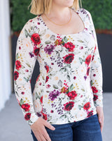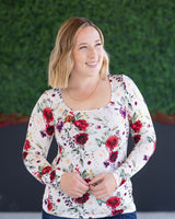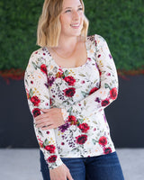 IN STOCK Alyssa Long Sleeve Top - Burgundy Bloom