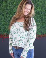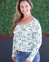 IN STOCK Alyssa Long Sleeve Top - Green Ribbons