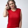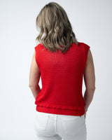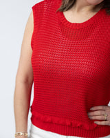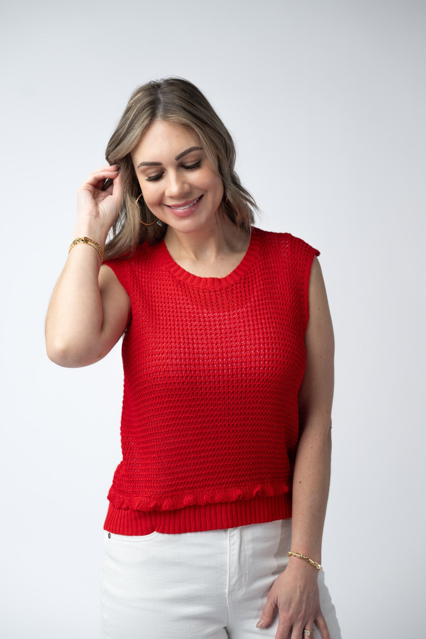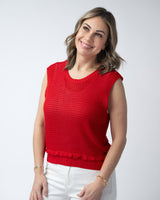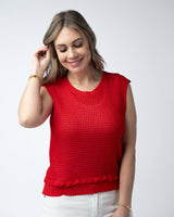 Celebrate your patriotic spirit in this charming open knit top featuring delicate feminine ruffles that add a flirty touch. The airy, breathable knit keeps you cool and comfortable, while the classic red hue channels timeless holiday vibes. Perfect for pairing with your favorite shorts, this versatile piece transitions seamlessly from casual Fourth of July gatherings to everyday summer adventures. Lightweight and effortlessly stylish, it's your go-to for making a patriotic statement with personality.