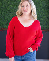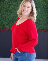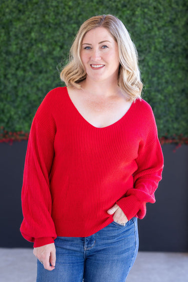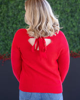 Relax in the cozy comfort of our Bethany Bow Knit Sweater in red. This super soft knit sweater features a small back opening with a ribbon to tie into a bow, perfect for a touch of cute detail. Stay warm and stylish all season long.
