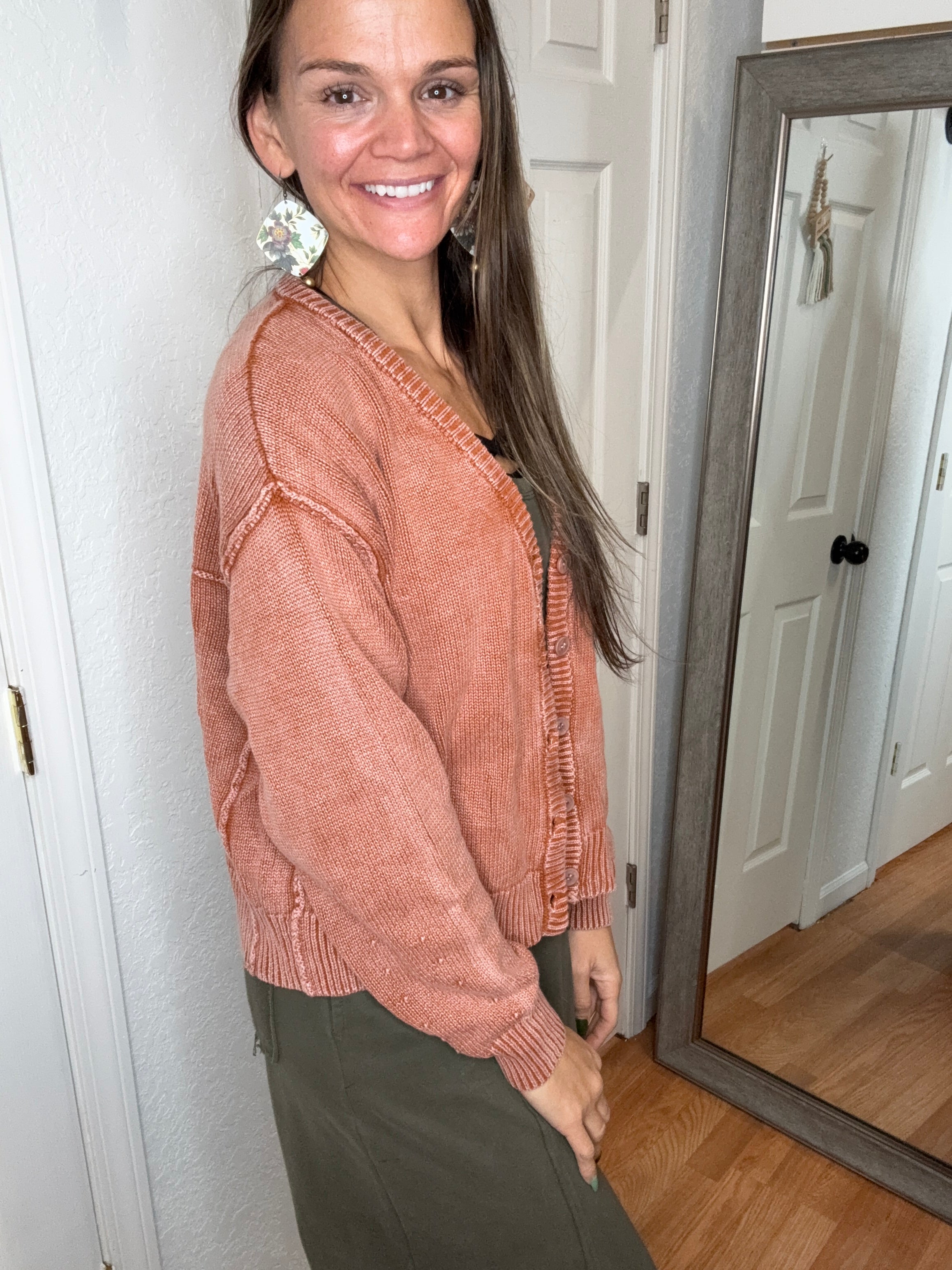 Stay cozy and stylish in the Olli Knit Cardigan in Rust. Featuring a button-down front and flattering V-neck, this cardigan combines comfort with easy layering. Its warm rust tone adds a touch of autumn charm to any outfit, perfect for everyday wear or cozy nights in. Designed to support your relaxed style, it’s a versatile addition to your wardrobe that you’ll reach for again and again.