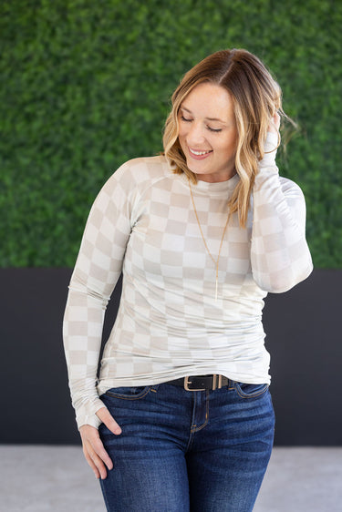 IN STOCK Blair Long Sleeve Top - Neutral Checkers