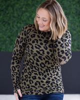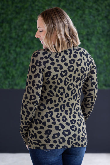 IN STOCK Blair Long Sleeve Top - Olive Animal Print