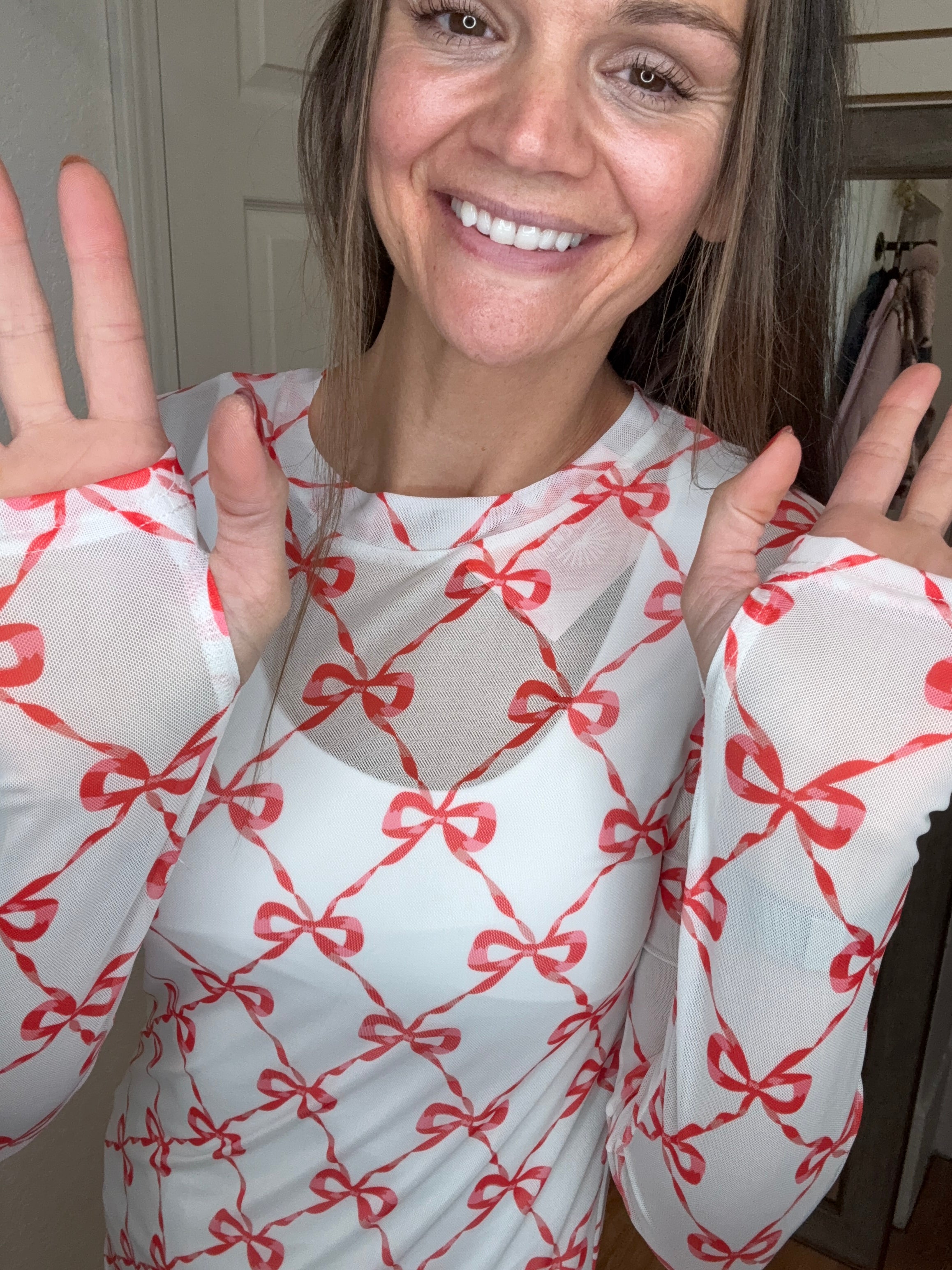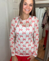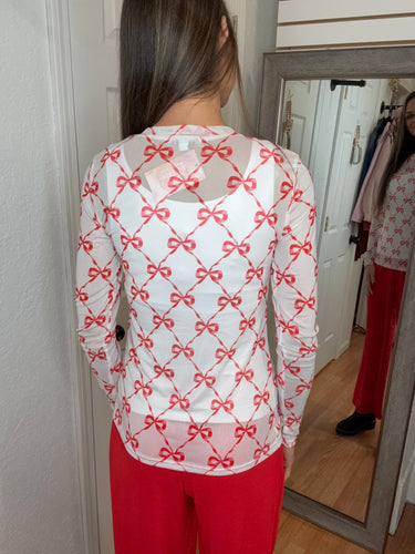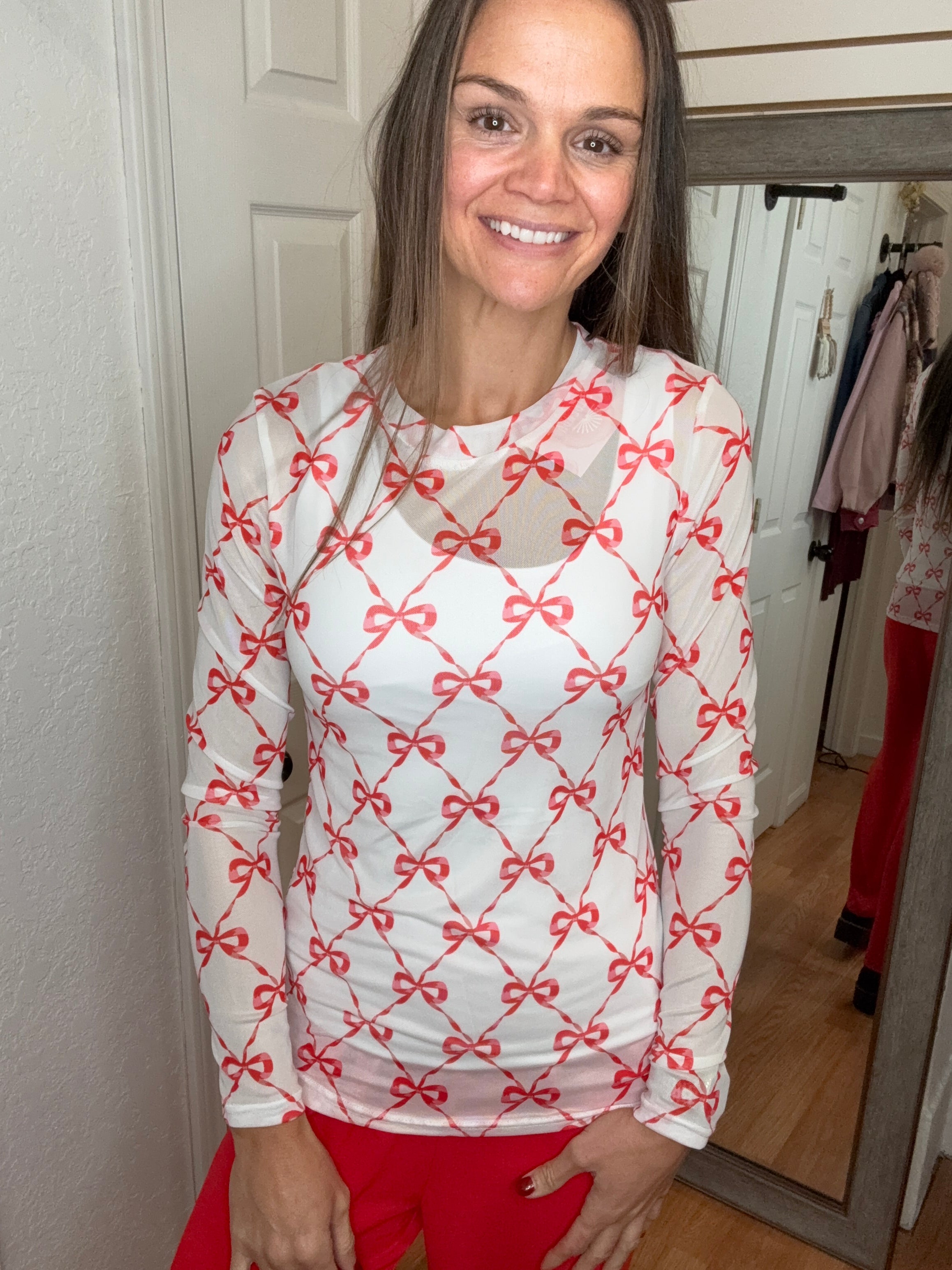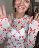 CHRISTMAS MESH TOP RED BOW - BLAKELEY