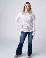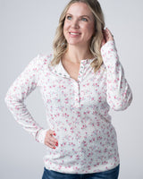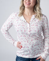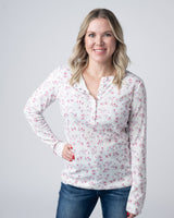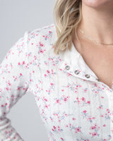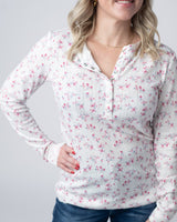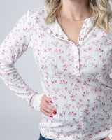 IN STOCK Button Snap Henley Top - Micro Pink Floral