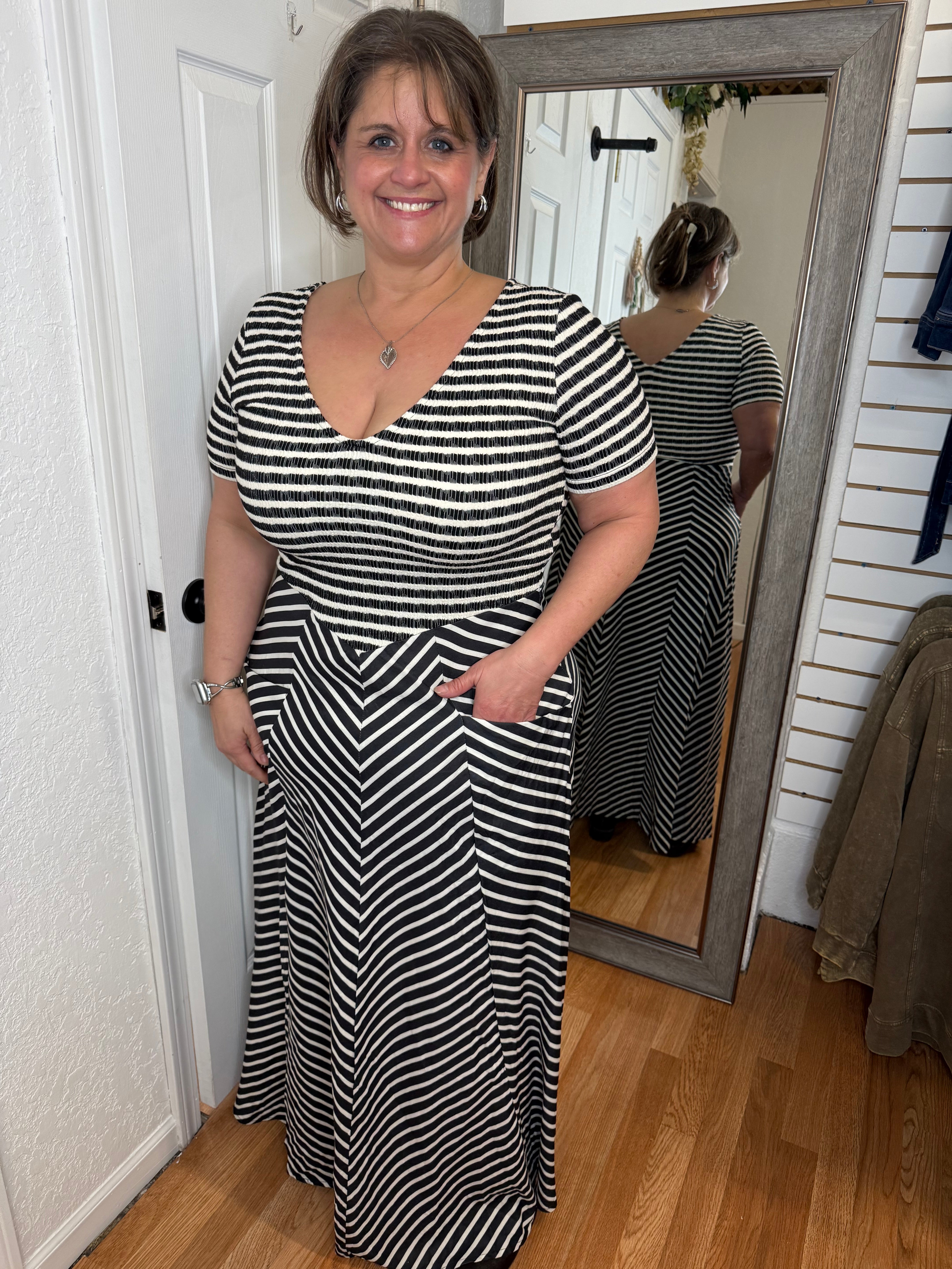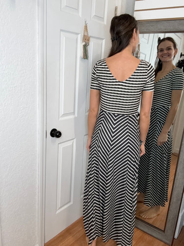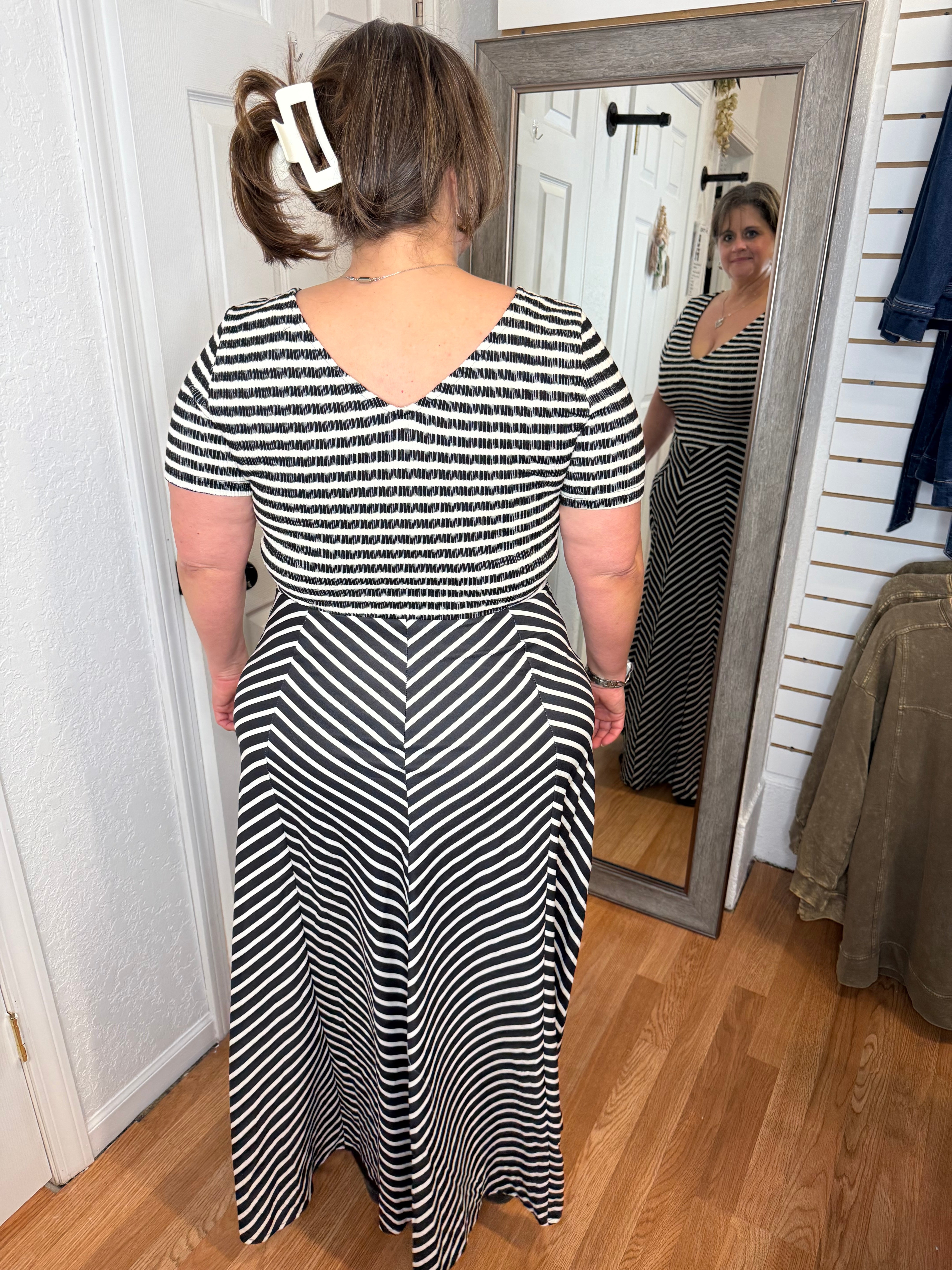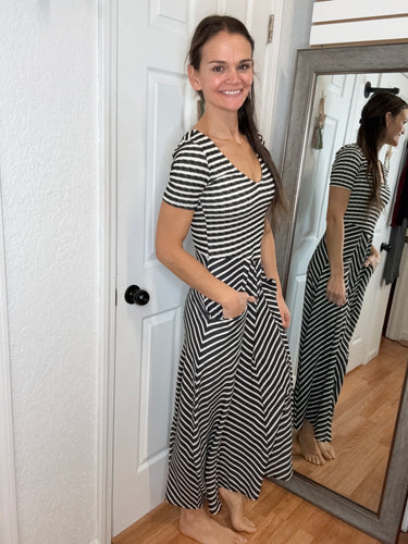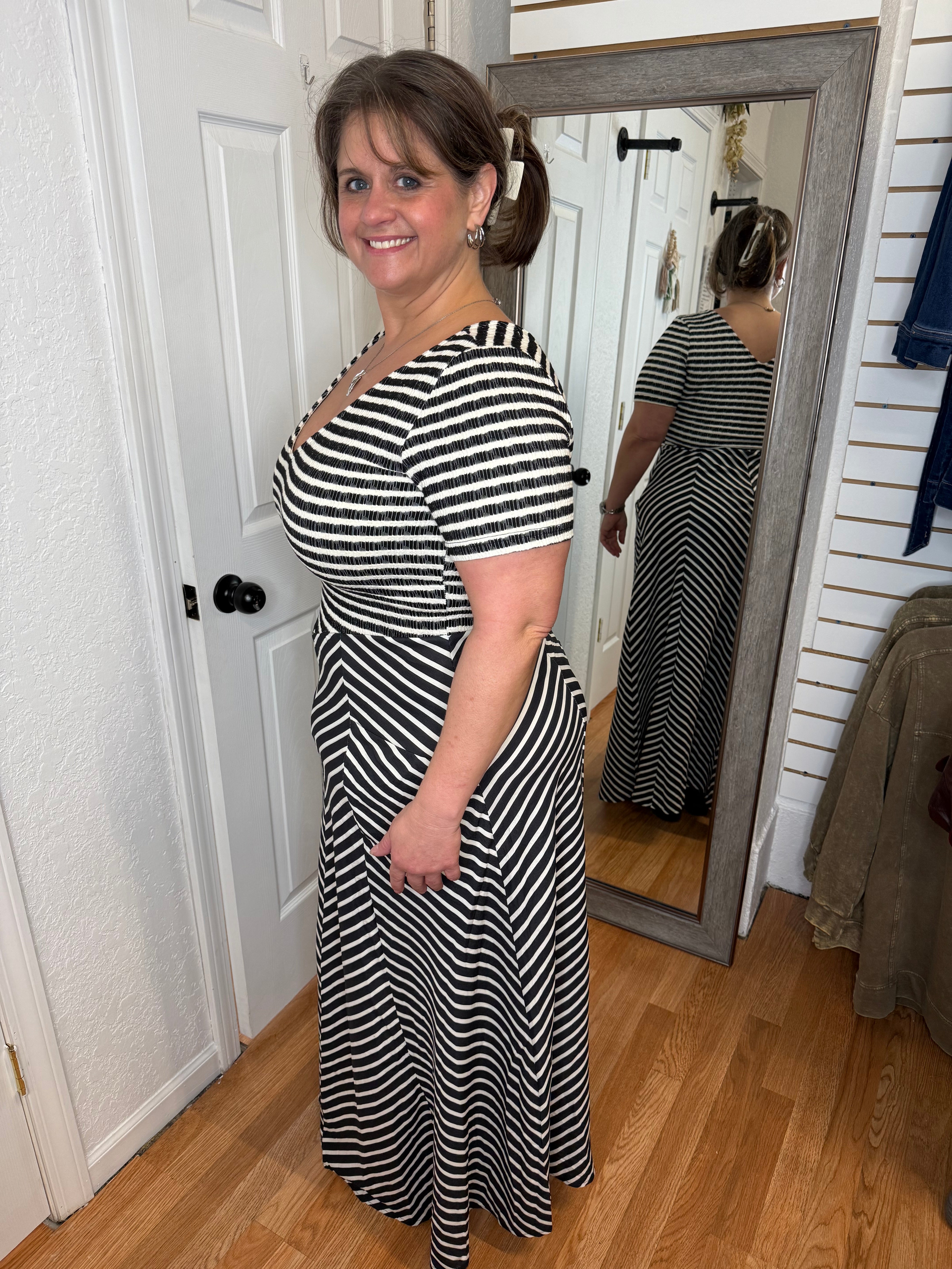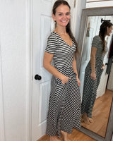 CALISTA STRIPE DRESS BLACK & GREY- BLAKELEY
