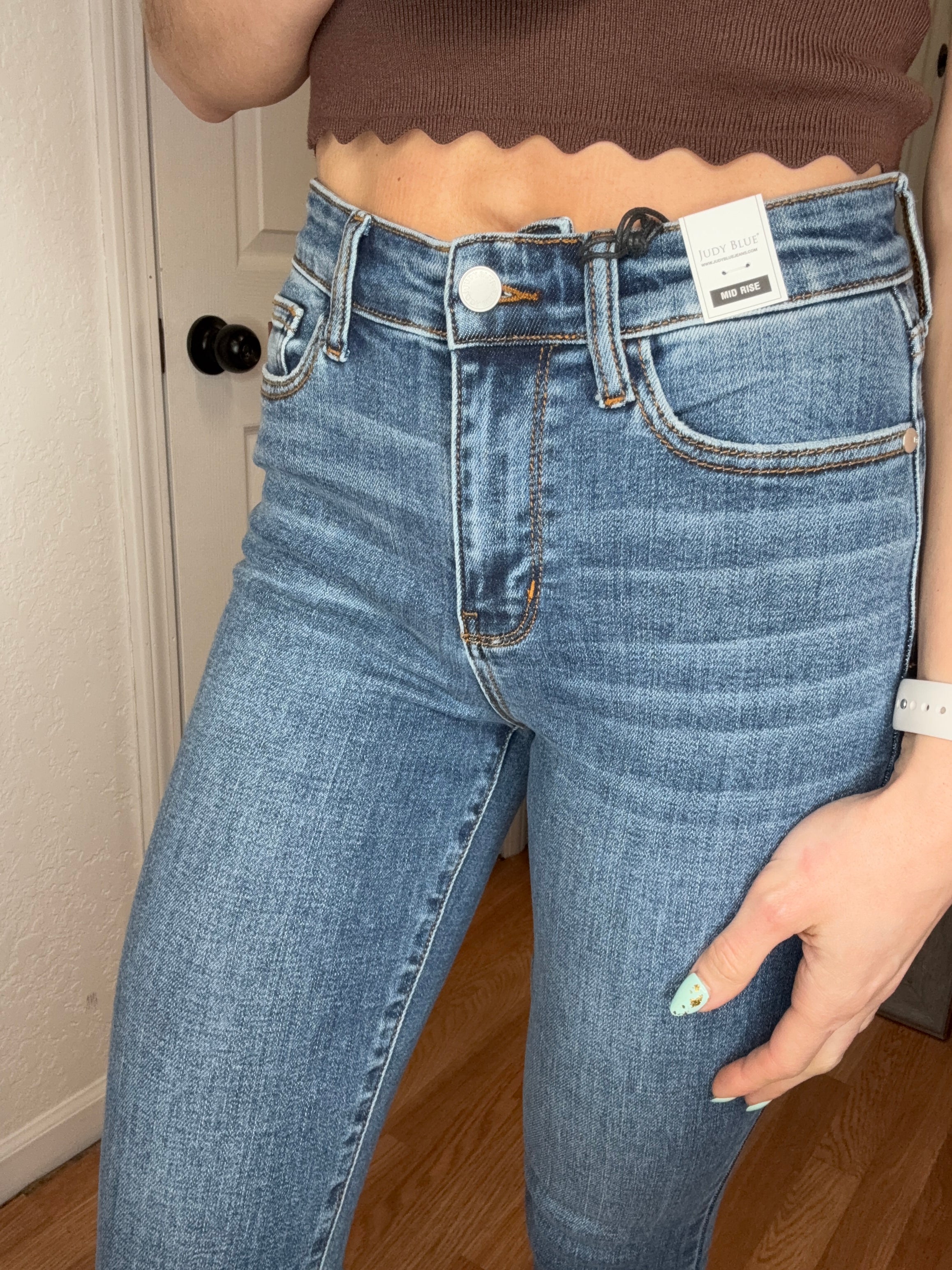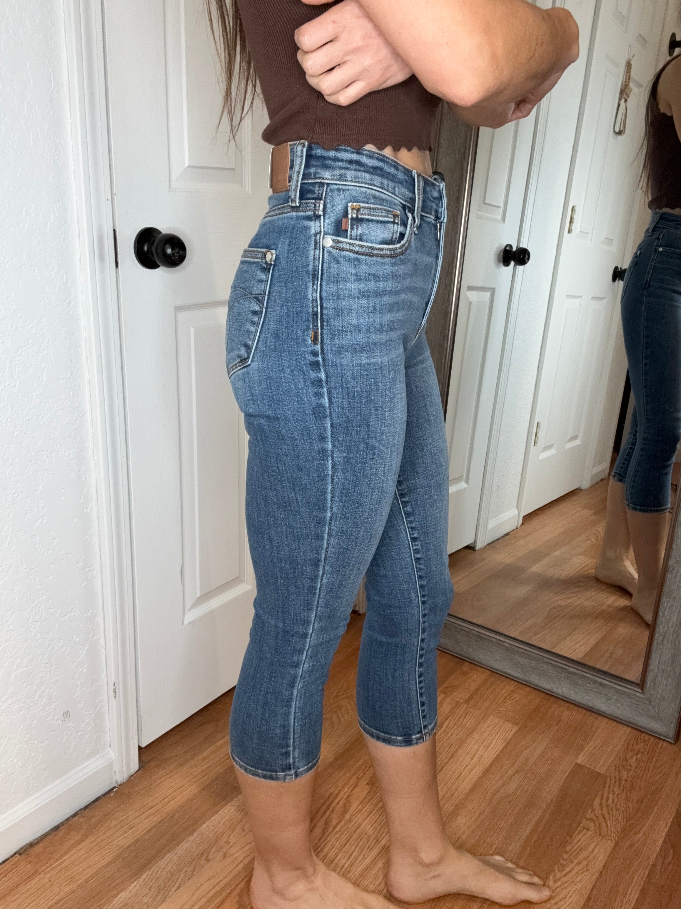 - MID RISE Capri Denim. As per normal, Judy Blue we always size down 1 from your true size in.
