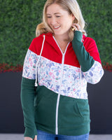 Be bold and make a statement this spring with our Colorblock Fullzip Hoodie! Featuring a trendy colorblock design with red, winter berry and evergreen! This hoodie is perfect for the risk-taker who loves to stand out. Made with stretchy fabric for ultimate comfort, this hoodie will keep you looking stylish and feeling confident all season long.