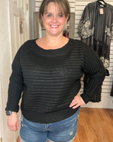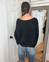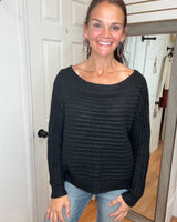 Experience comfort and style with the Aurelia Sweater Top in black. Featuring a relaxed dolman long sleeve and a flattering boatneck, this cozy sweater is perfect for layering or wearing on its own. Its soft fabric keeps you warm while offering effortless elegance for any casual occasion.
