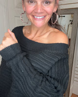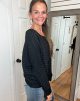 DAWN BOAT NECK SWEATER TOP BLACK - COZY