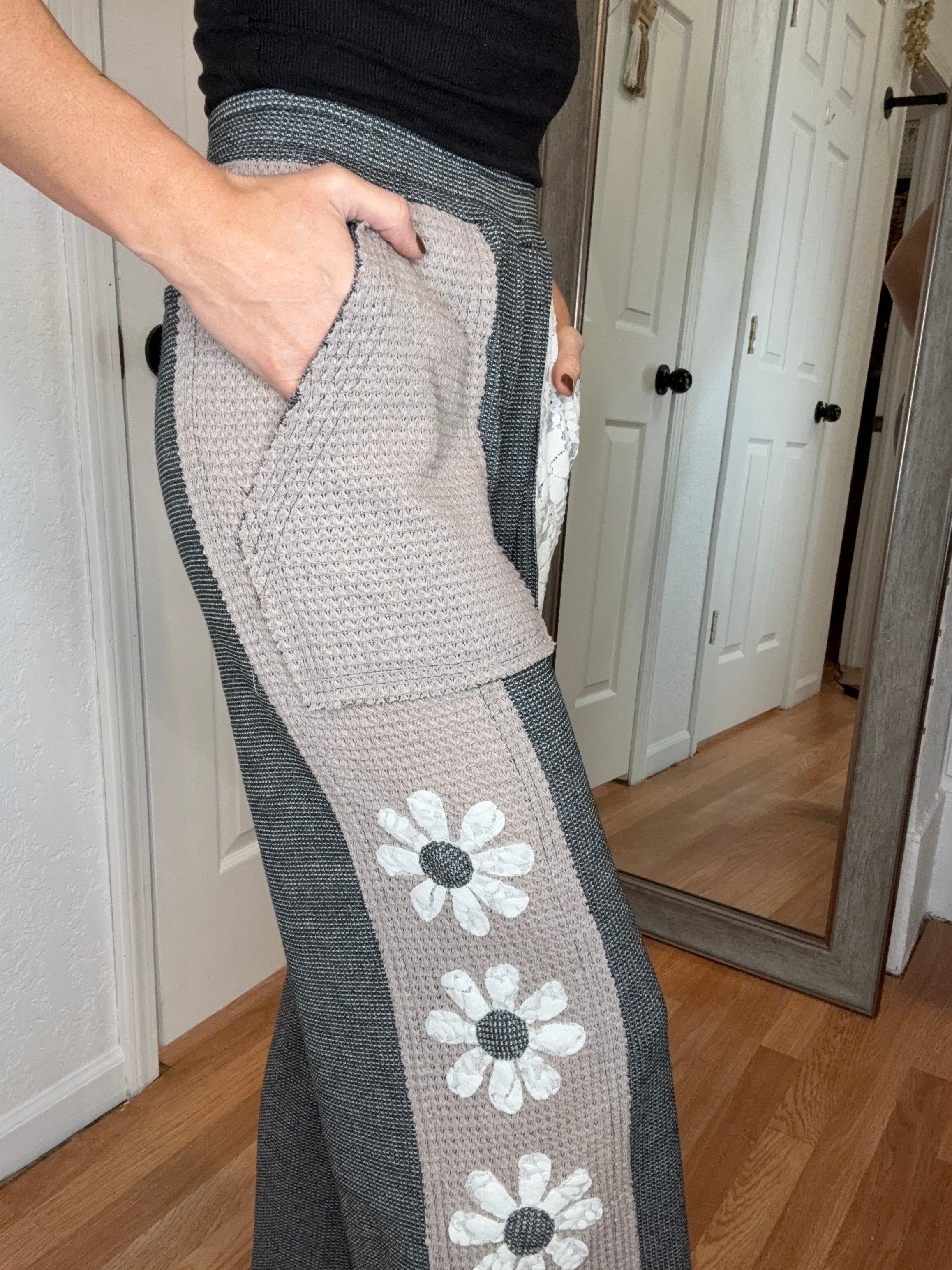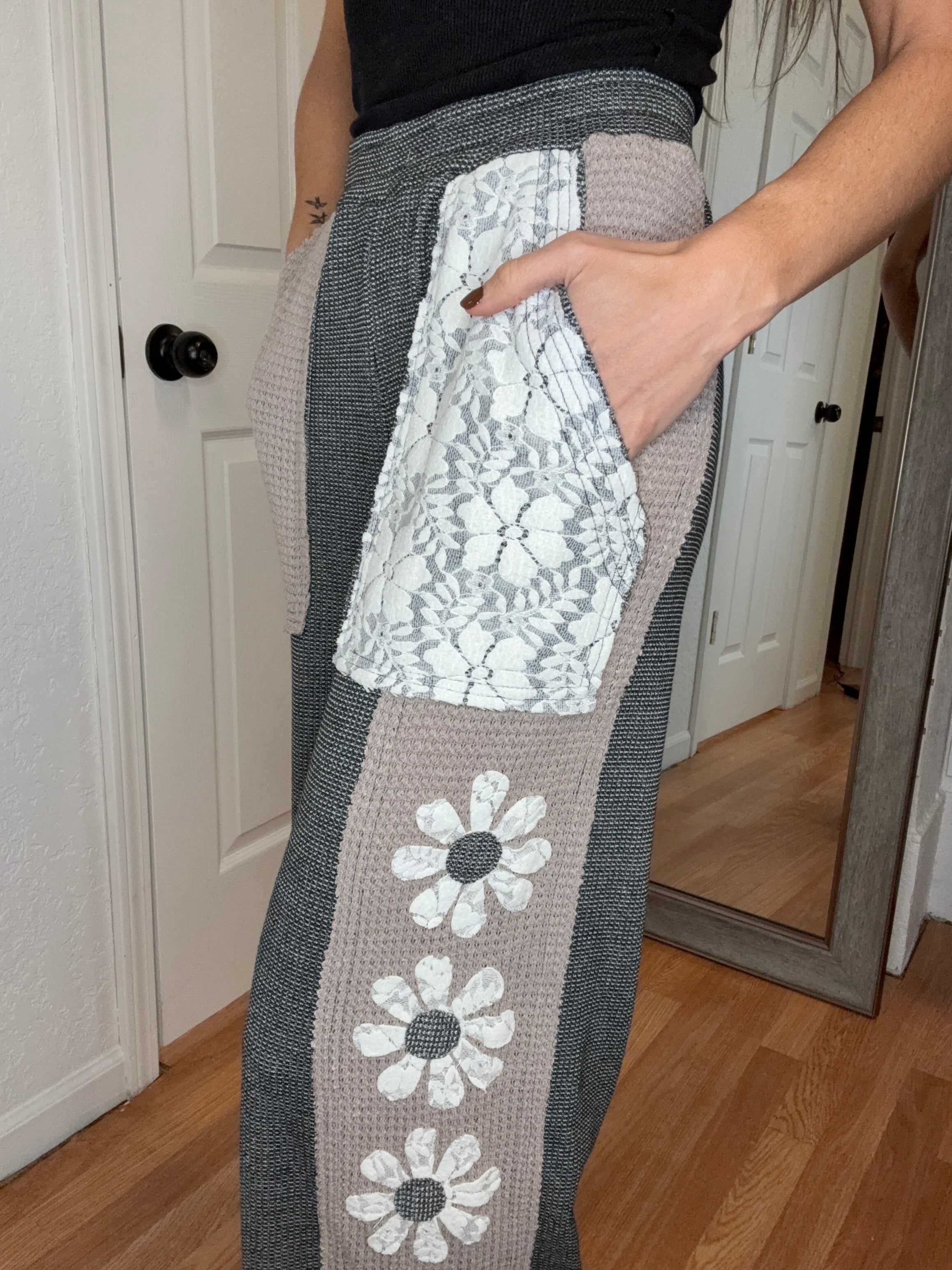 FARLY WIDE LEG PATCHWORK PANTS GREY- DAVI & DANI