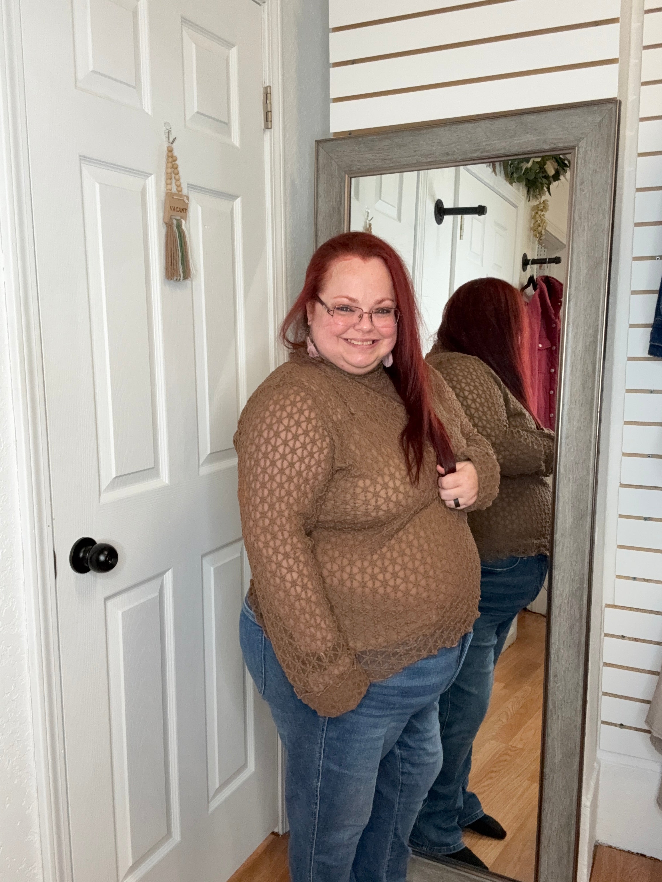 The Wanda Lace Top in Walnut by Davi & Dani offers a graceful blend of delicate lace and warm, inviting color. Designed to provide both comfort and style, this top effortlessly enhances your wardrobe with a touch of elegance. Its intricate lace details add feminine charm, while the soft walnut shade ensures versatile pairing for any occasion. Perfect for those seeking a refined yet cozy look, this lace top supports your confidence with every wear.